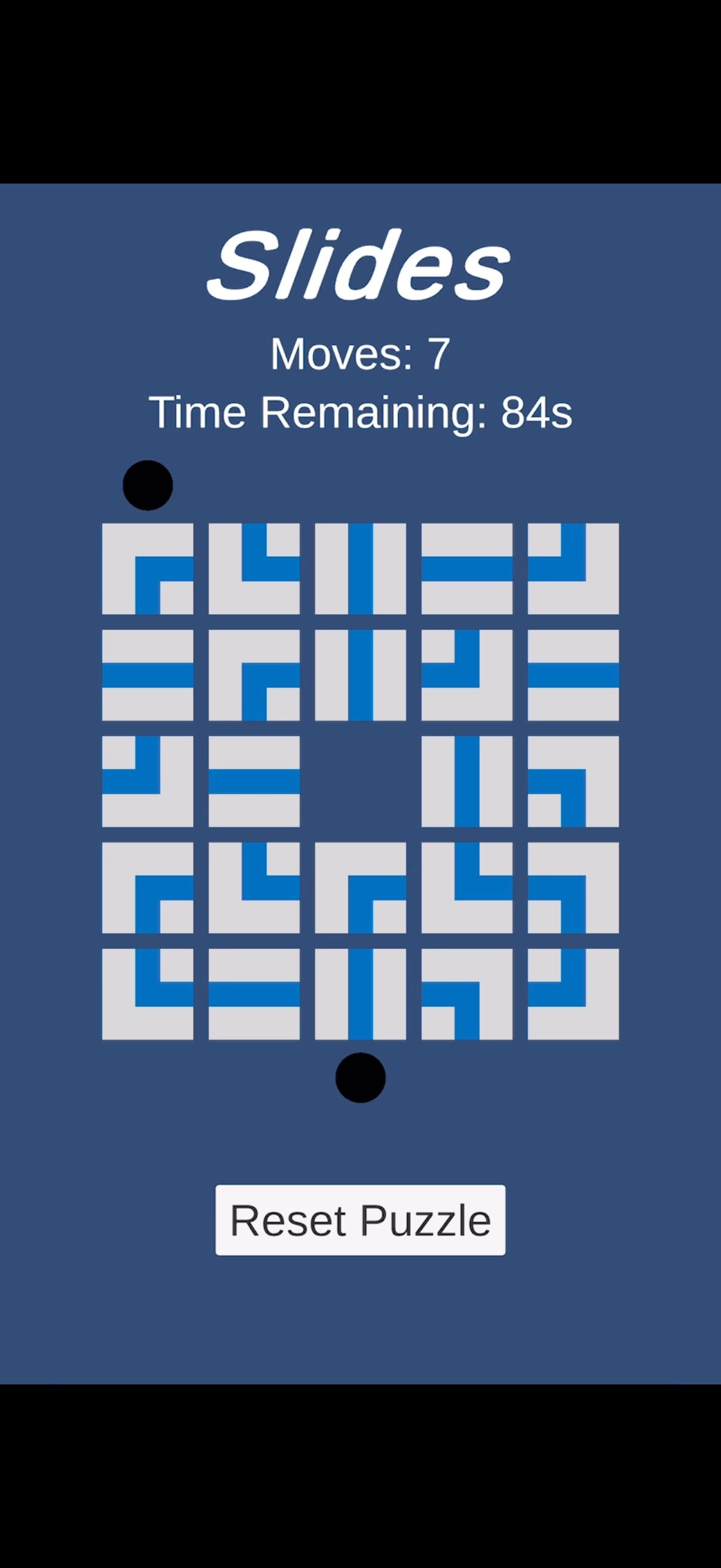 I built a simple 2D sliding puzzle game in Unity and deployed it to a web app. The goal is to slide tiles to create a path between the black dots before the timer runs out. It's free to play at slidesgame.com. Note that it is optimized for play on a mobile device.